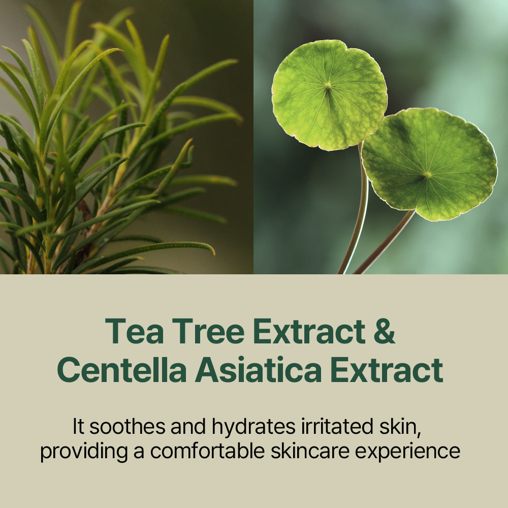 RAPID CALMING - Centella asiatica, Tea tree extract known as a representative soothing ingredient, that quickly calms irritated and sensitive skin, leaving the skin soothed and protected even after cleansing. 100% Natural surfactants film the skin's moisture barrier, making the skin hydrated without irritation.